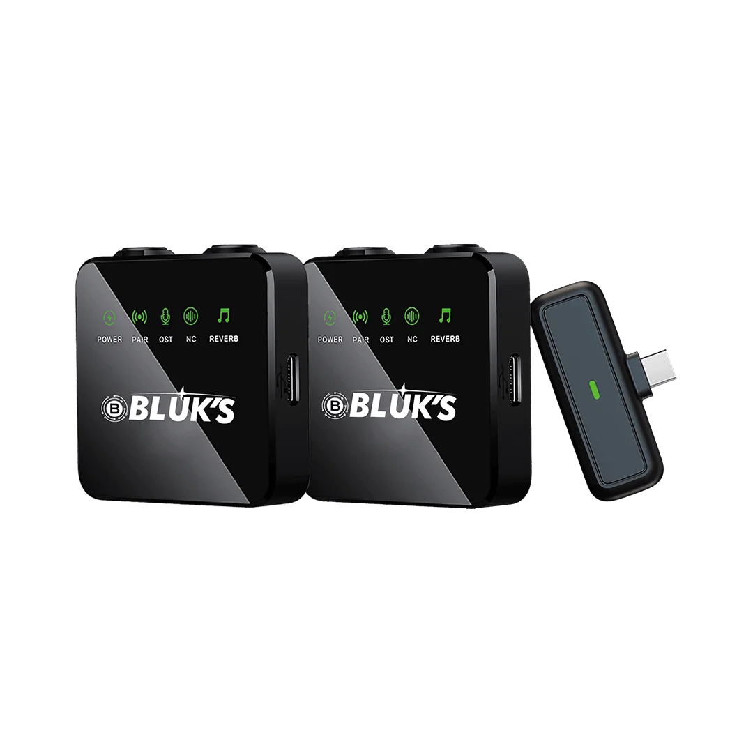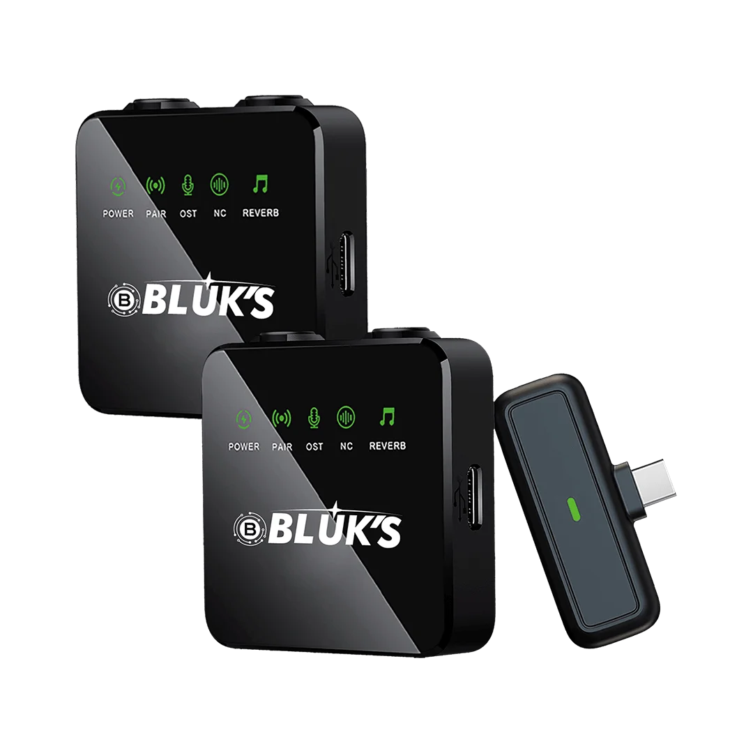 The Bluk’s BX-10 Wireless Dual Microphone System is engineered for creators who need crystal-clear sound, live monitoring, and pro-grade noise cancellation — without studio setup. With dual lavalier mics, capture two speakers at once in perfect sync — ideal for YouTubers, educators, podcasters, interviewers, and event hosts.