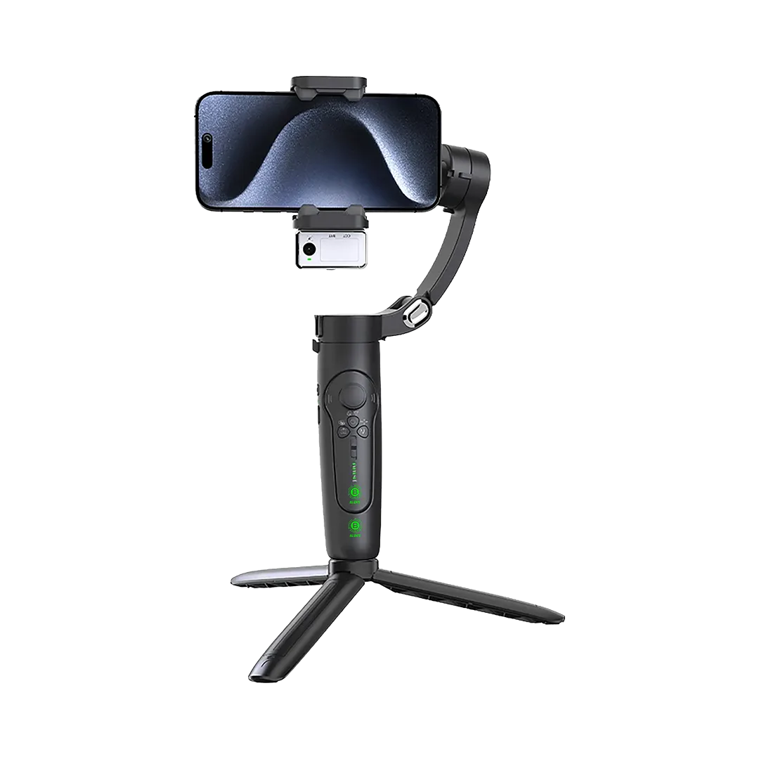 Transform your smartphone into a professional cinema camera. The BX-M3 Alpro is a 3-axis stabilizer that uses AI technology to track your every move with fluid precision.